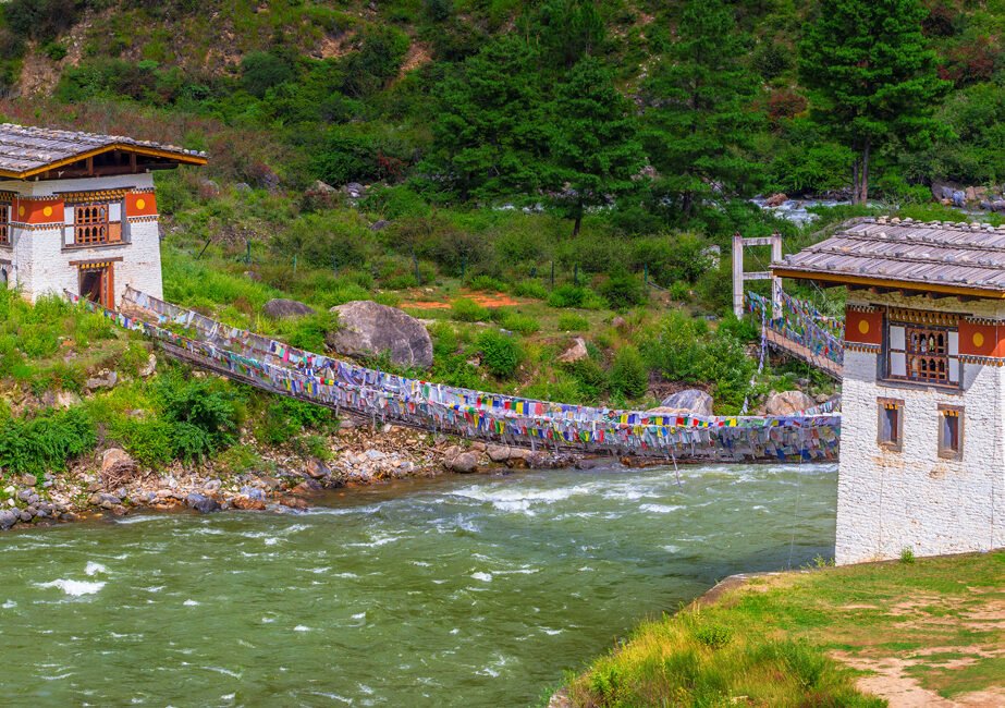 Arrive at Paro International Airport, surrounded by majestic Himalayan peaks, and transfer to Thimphu, Bhutan's vibrant capital, through pristine valleys and traditional villages. Stop en route at Tamchog Lhakhang, a 15th-century temple reached via an ancient iron chain bridge-a symbolic step into Bhutan's spiritual heritage. In Thimphu, check in to your hotel and relax before visiting Pangri Zampa Astrology School to explore Bhutanese astrology and experience personal readings. End the day at Centenary Market, wandering among handicrafts, textiles, and local produce. Overnight: Thimphu